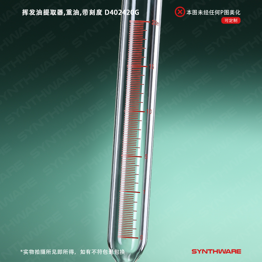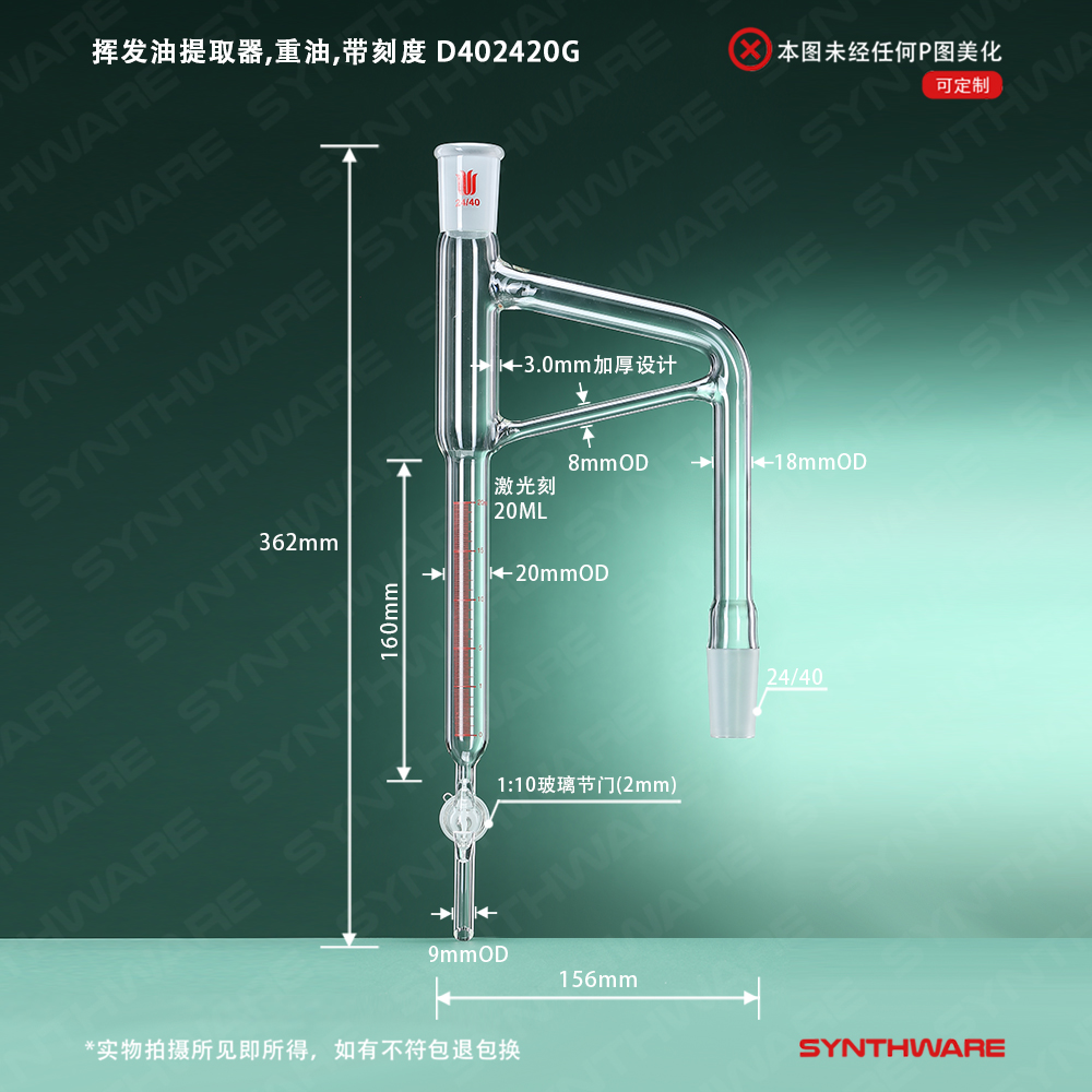 挥发油提取器,重油,带刻度,磨口24/40,容量:20ml,四氟节门 D402420S