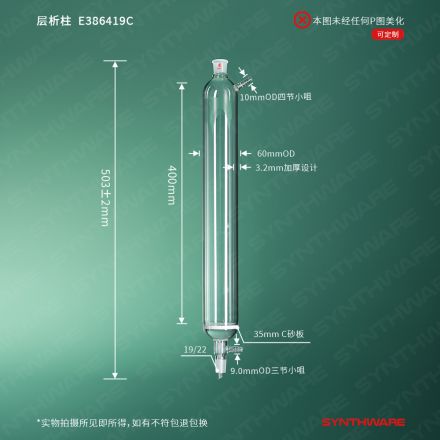 层析类 > 减压层析柱 > 带上磨口减压层析柱 > SYNTHWARE > 具小嘴减压层析柱,上下磨口19/22,管径:60mm,管长400mm,C E386419C
