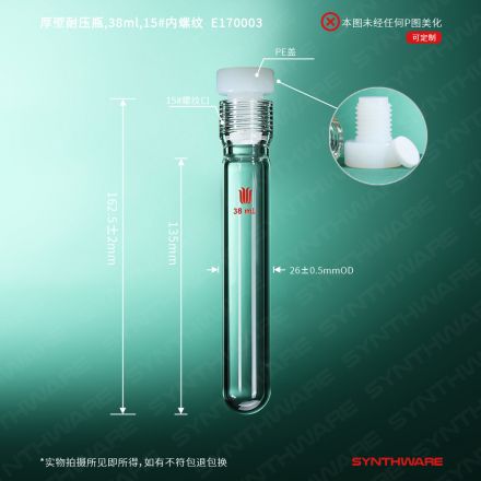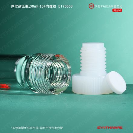 厚壁耐压瓶,38ml,15#内螺纹,标配可替换密封盖 PE盖 E170003 E170003