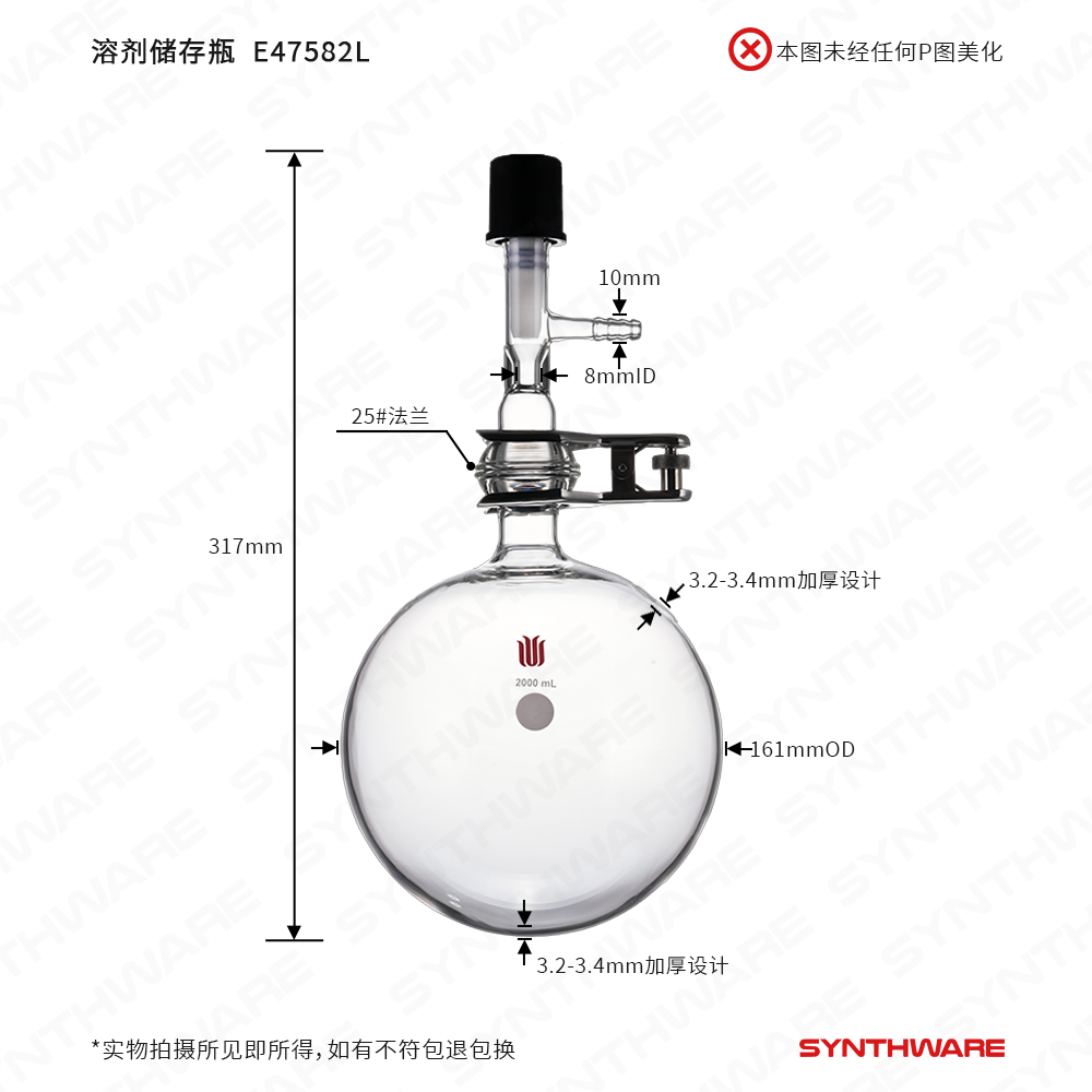溶剂存储瓶,分体式,圆球型,25#法兰连接头,8mm高真空阀,2000ml E47582L