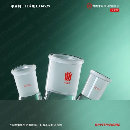平底斜三口球瓶,厚壁高强度,中间磨口:34/45,侧磨口:29/42,500ml E333429