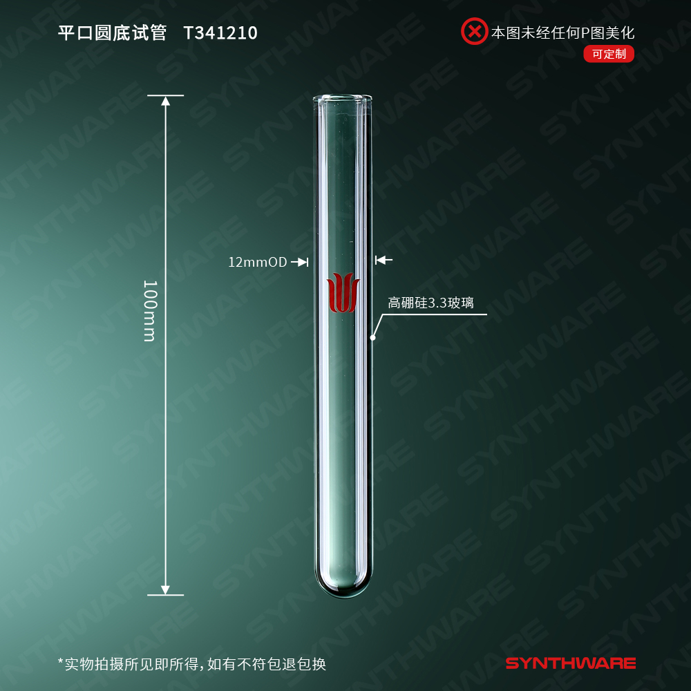平口圆底试管,高硼硅3.3玻璃,外径*总长12*100mm,10支/包 T341210