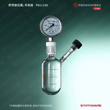 厚壁耐压瓶,带刻度,15#内螺纹口带压力表,单侧内螺纹高真空,主口15#内螺纹口,容量:200ml P611200