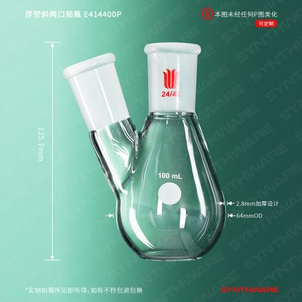 厚壁斜两口茄瓶,平底,高强度,中间磨口:24/40,侧磨口:14/20,100ml E414100P