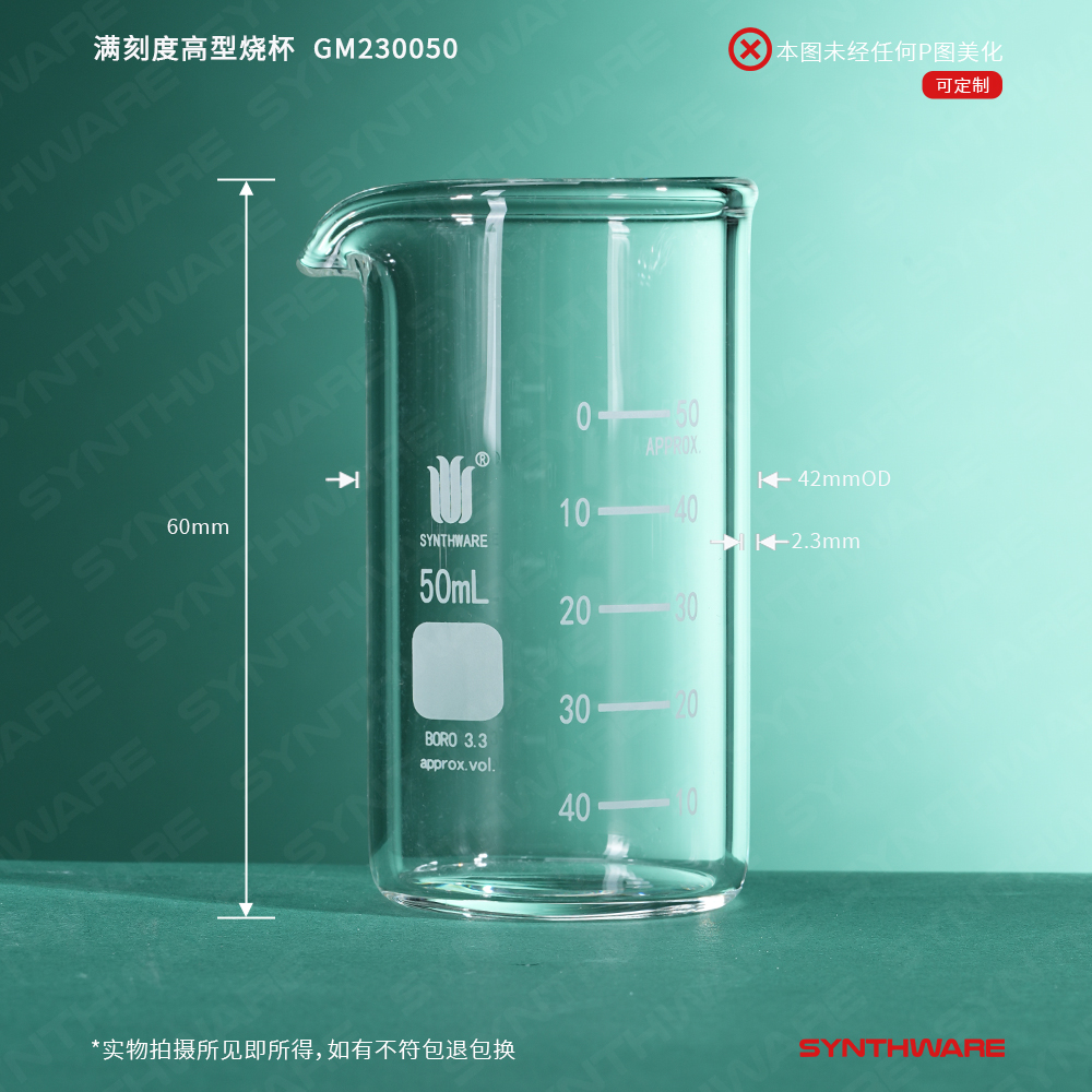 高型烧杯,厚壁,满刻度,容量:50ml GM230050