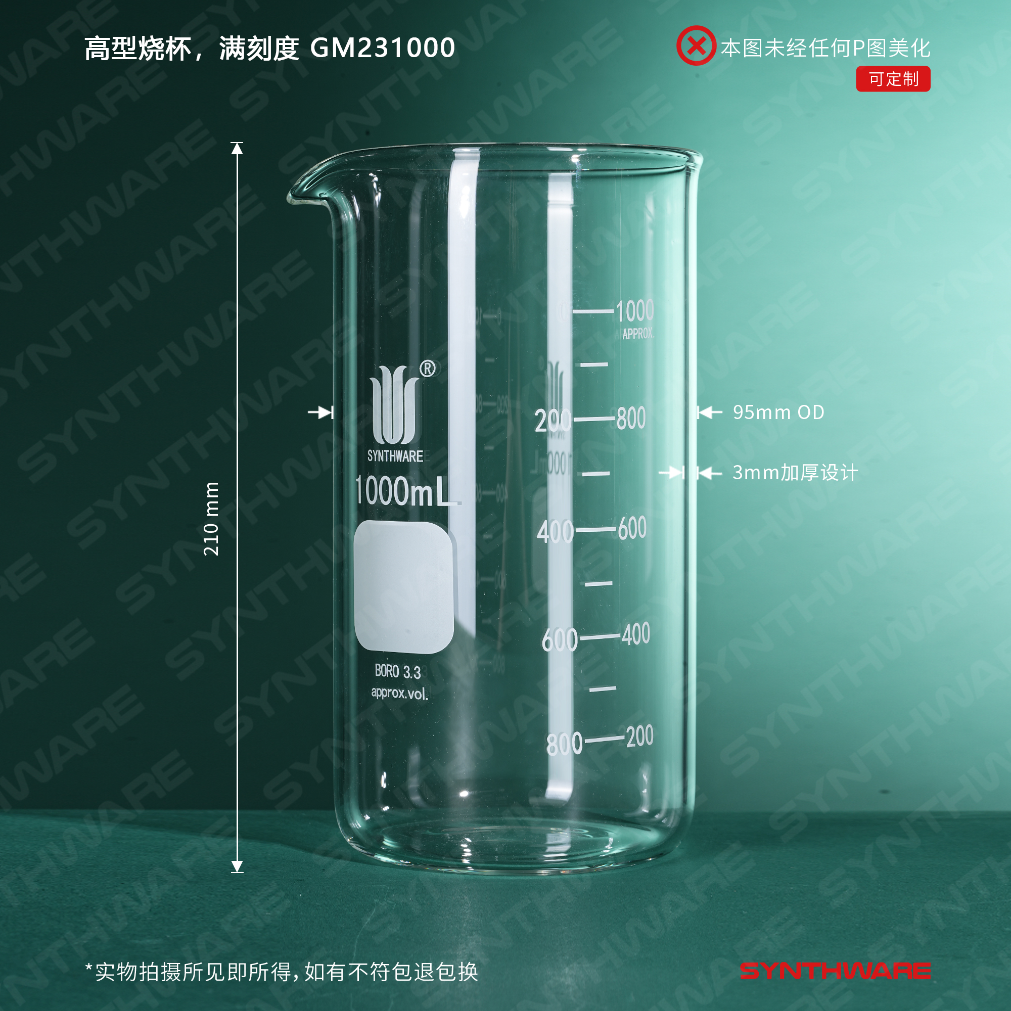 高型烧杯,厚壁,满刻度,容量:1000ml GM231000
