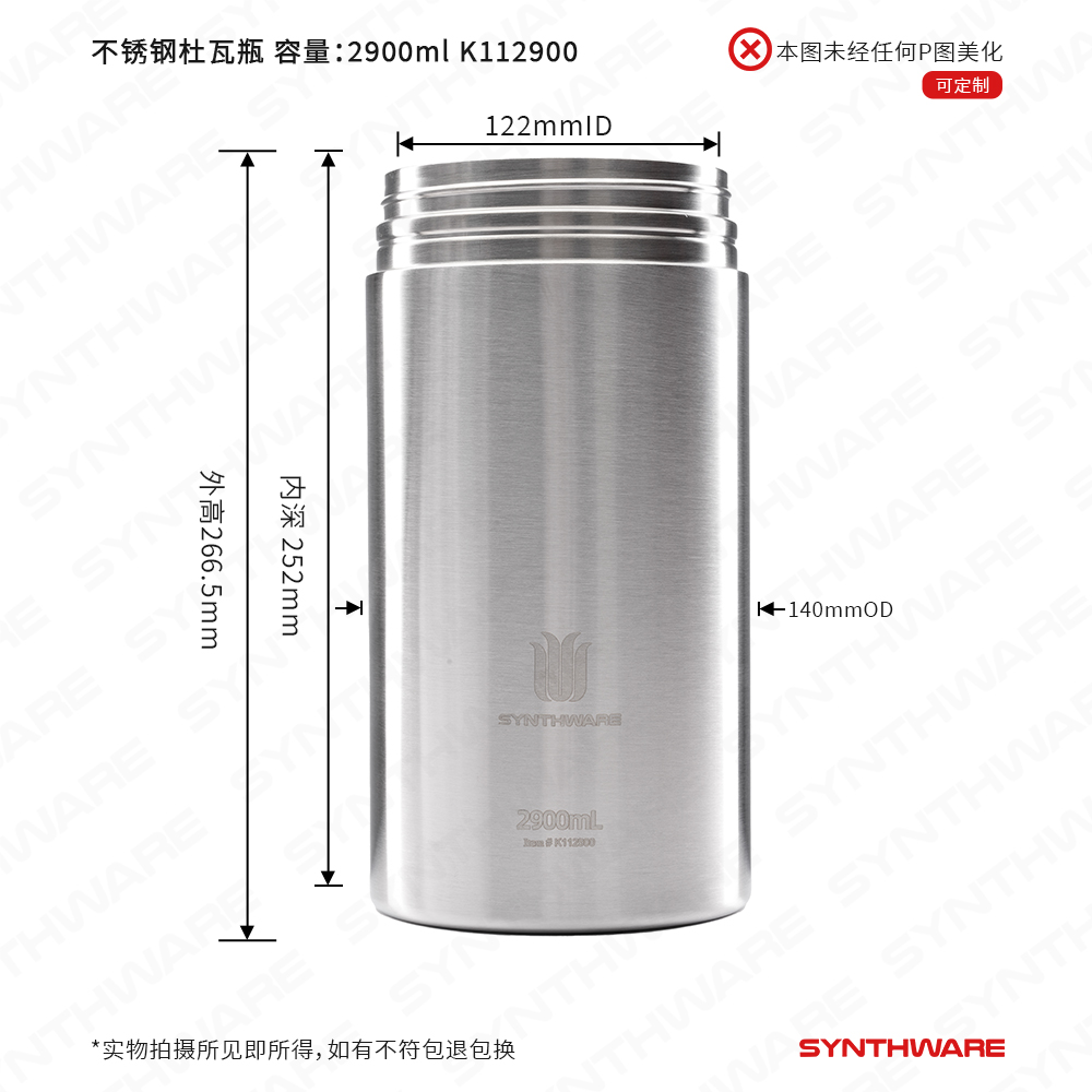 不锈钢杜瓦瓶,容量:2900ml,内径*内高:122*252mm,外径*外高:140*266.5mm,1个/盒 K112900