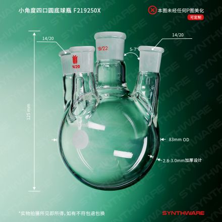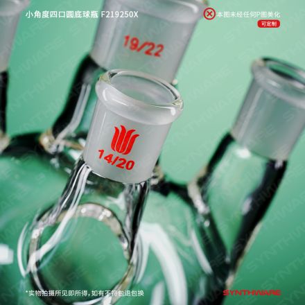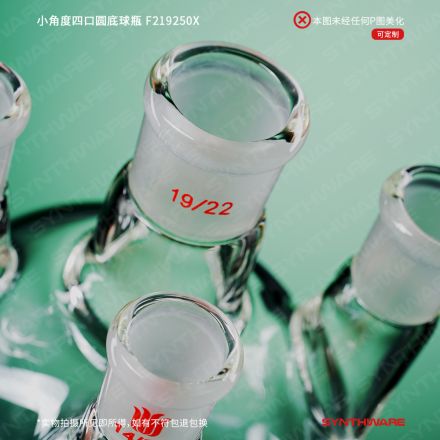 小角度四口圆底球瓶,中间磨口:19/22,侧磨口:14/20,250ml F219250X