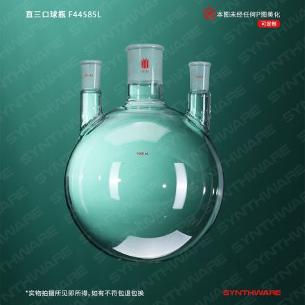 # 侧口可根据需求连接其他功能性接头或装置如:通气接头,冷凝器,加料漏斗等。不建议连接温度计或温度计套管产品,如果需要连接温度计,请选购F44X小角度三口瓶产品。