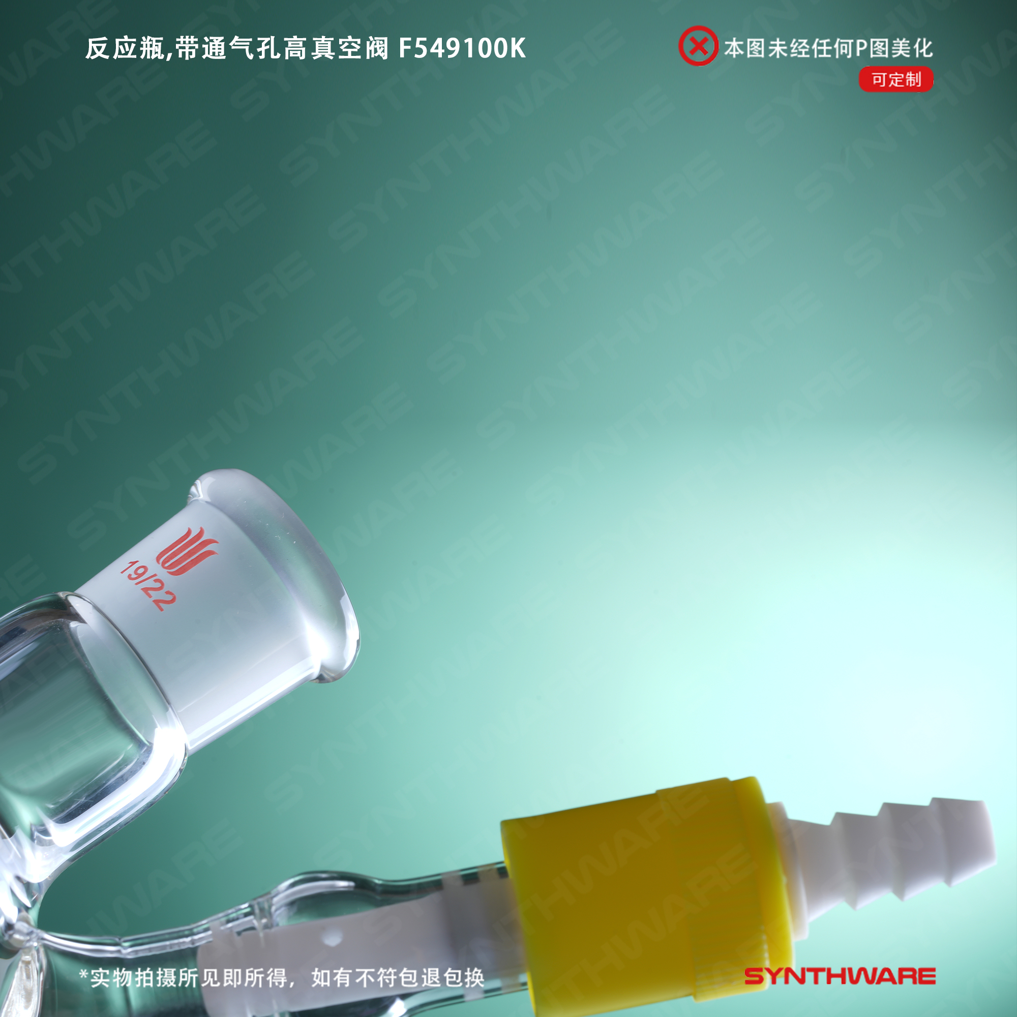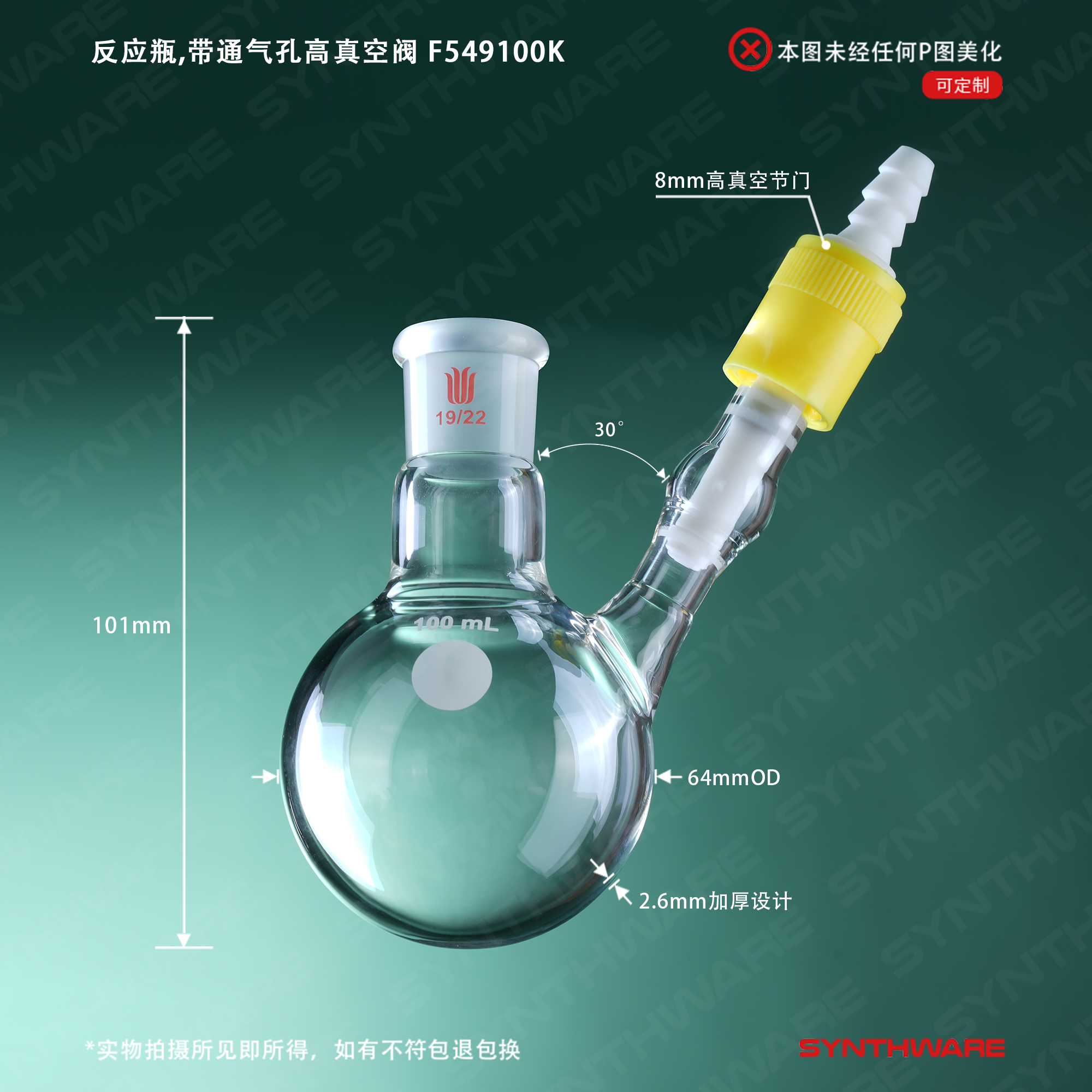 反应瓶,带通气孔高真空阀,100ml,19/22 F549100K