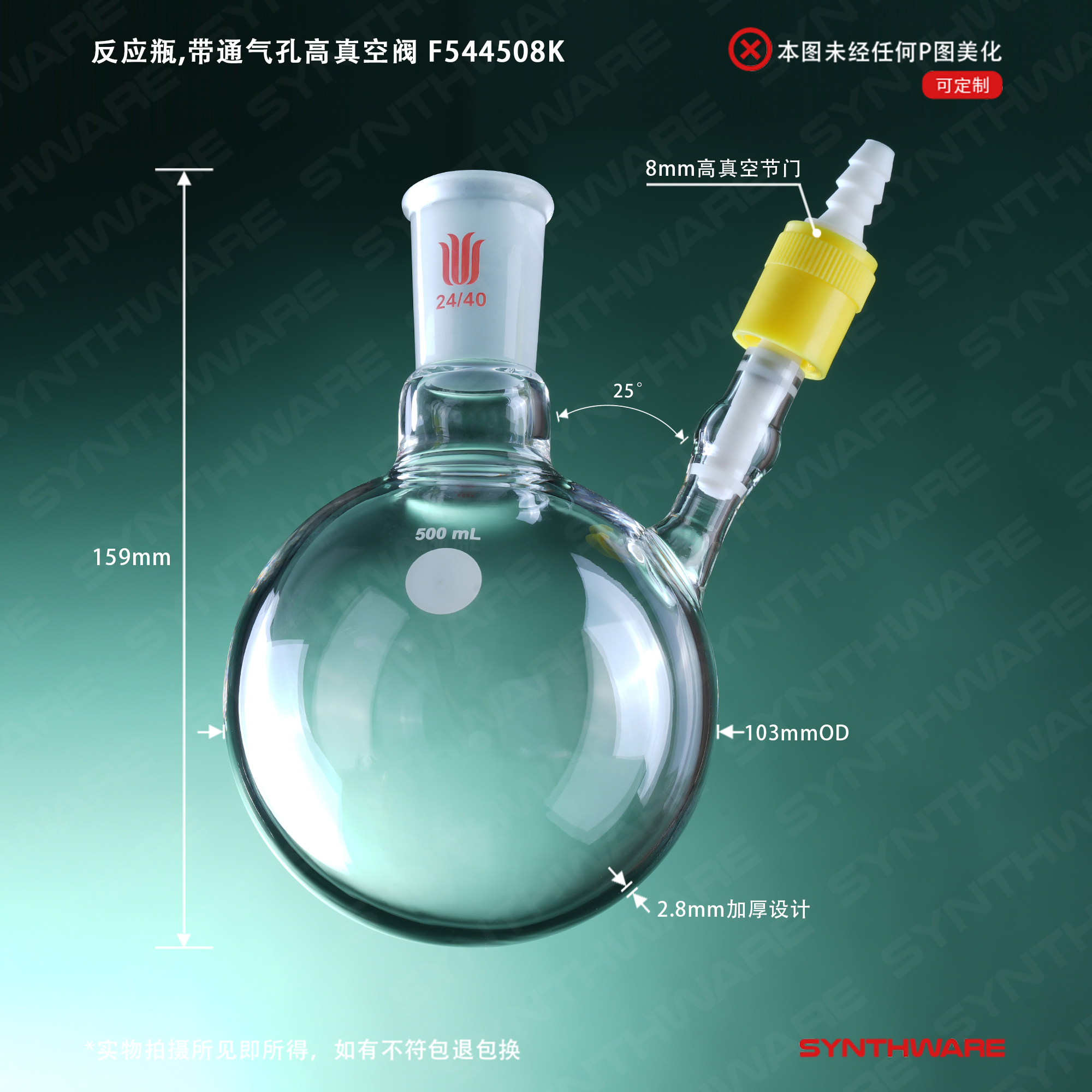 反应瓶,带通气孔高真空阀,500ml,19/22 F549508K
