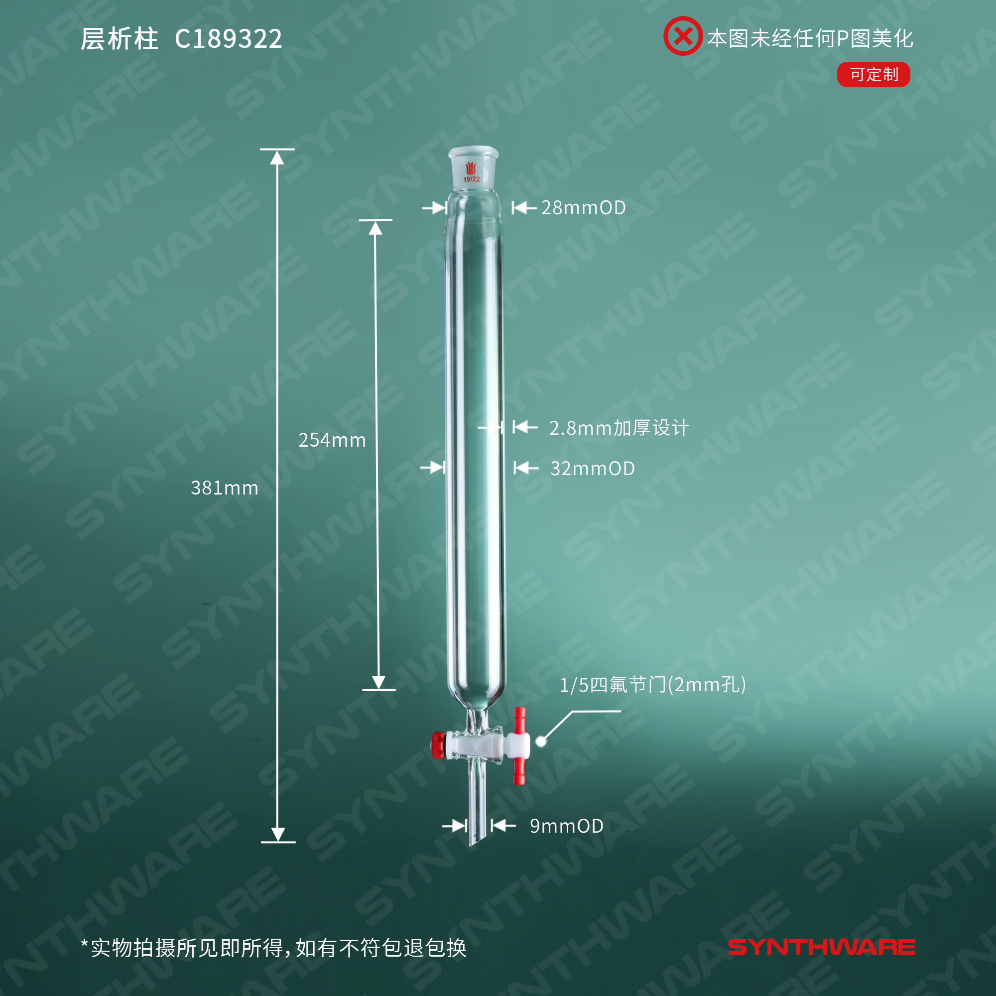 层析类 > 层析柱 > 无砂板闪式层析柱 > SYNTHWARE > 层析柱,φ32mm,有效长254mm,节门孔径:2mm,19/22 C189322