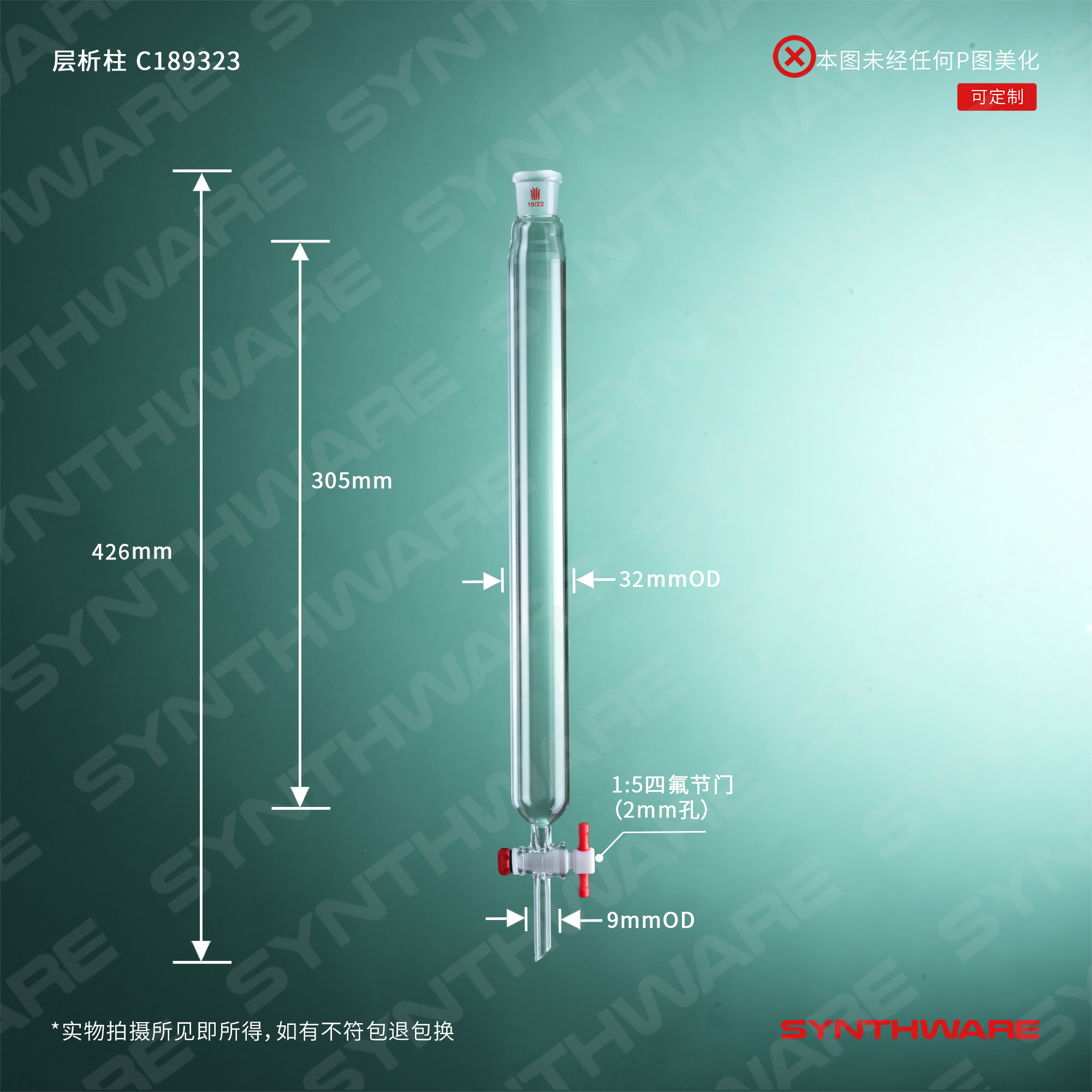层析类 > 层析柱 > 无砂板闪式层析柱 > SYNTHWARE > 层析柱,φ32mm,有效长305mm,节门孔径:2mm,19/22 C189323