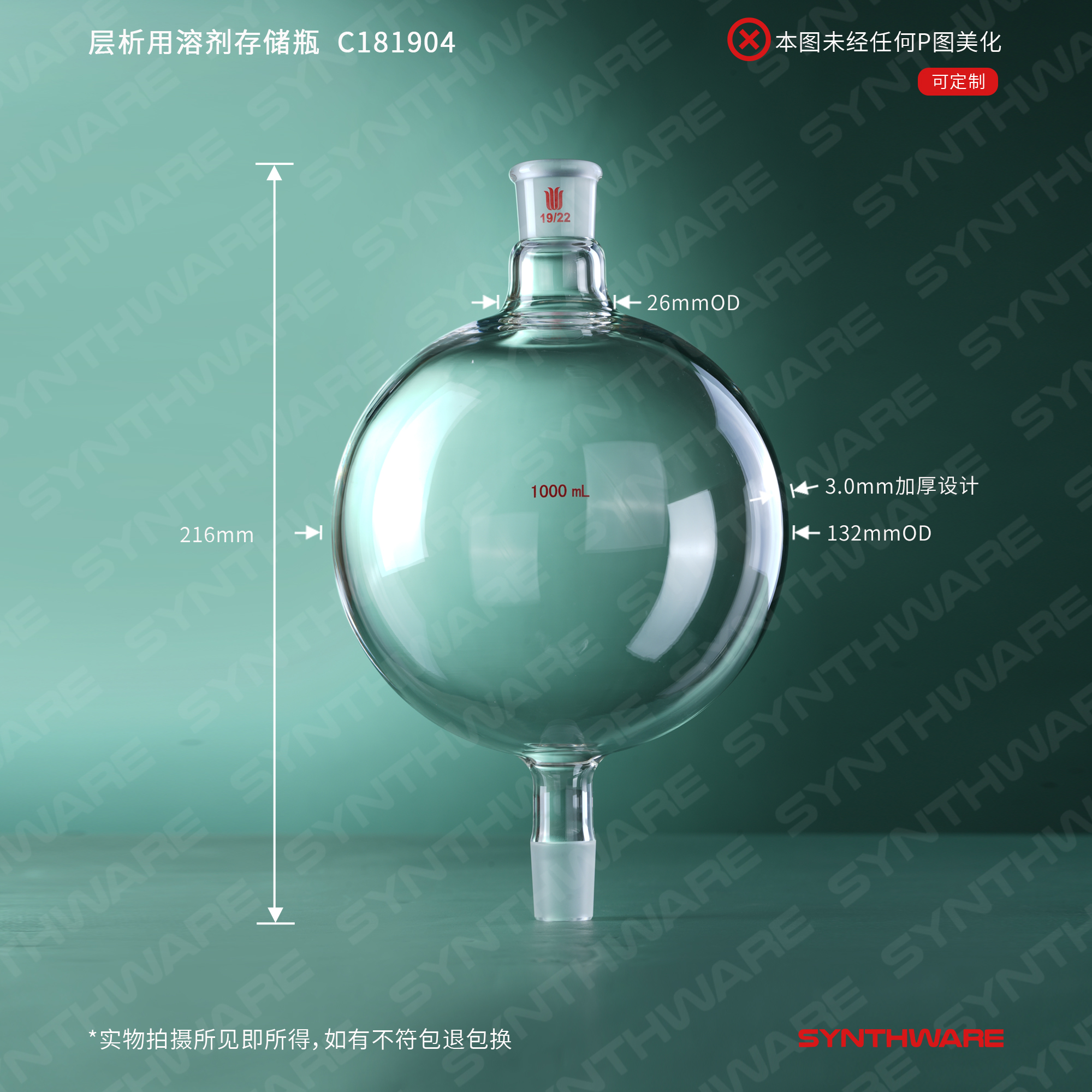层析类 > 层析用溶剂存储瓶 > 球瓶上下为内外磨口溶剂存储瓶 > SYNTHWARE > 层析用溶剂存储瓶,19/22,1000ml C181904