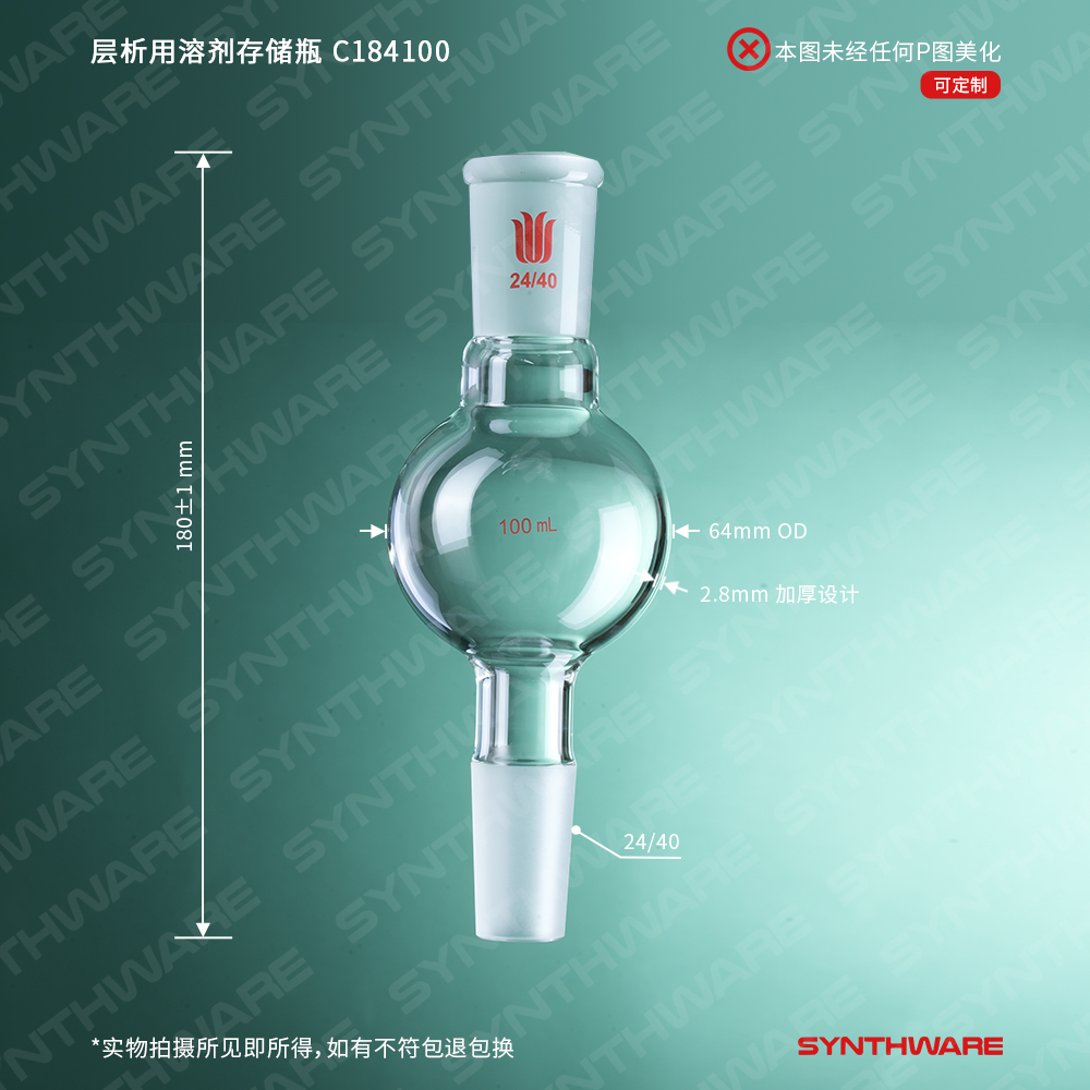 层析类 > 层析用溶剂存储瓶 > 球瓶上下为内外磨口溶剂存储瓶 > SYNTHWARE > 层析用溶剂存储瓶,24/40,100ml C184100