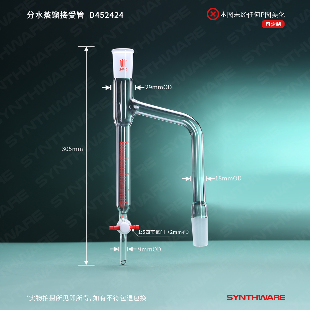 用于分离反应体系或蒸馏体系中的水,带2mm孔径的四氟节门。