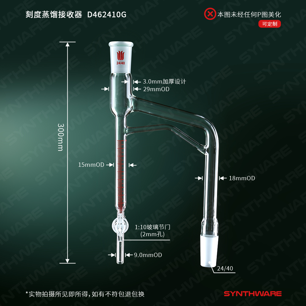 刻度蒸馏接收器 10ml,磨口24/40,玻璃节门 D462410G