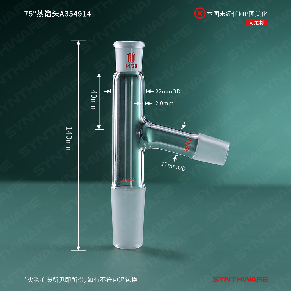 # 侧支管呈 75º 角,为标准锥度外磨口,由无心磨精密研磨,密封性有保障,可连接冷凝器。