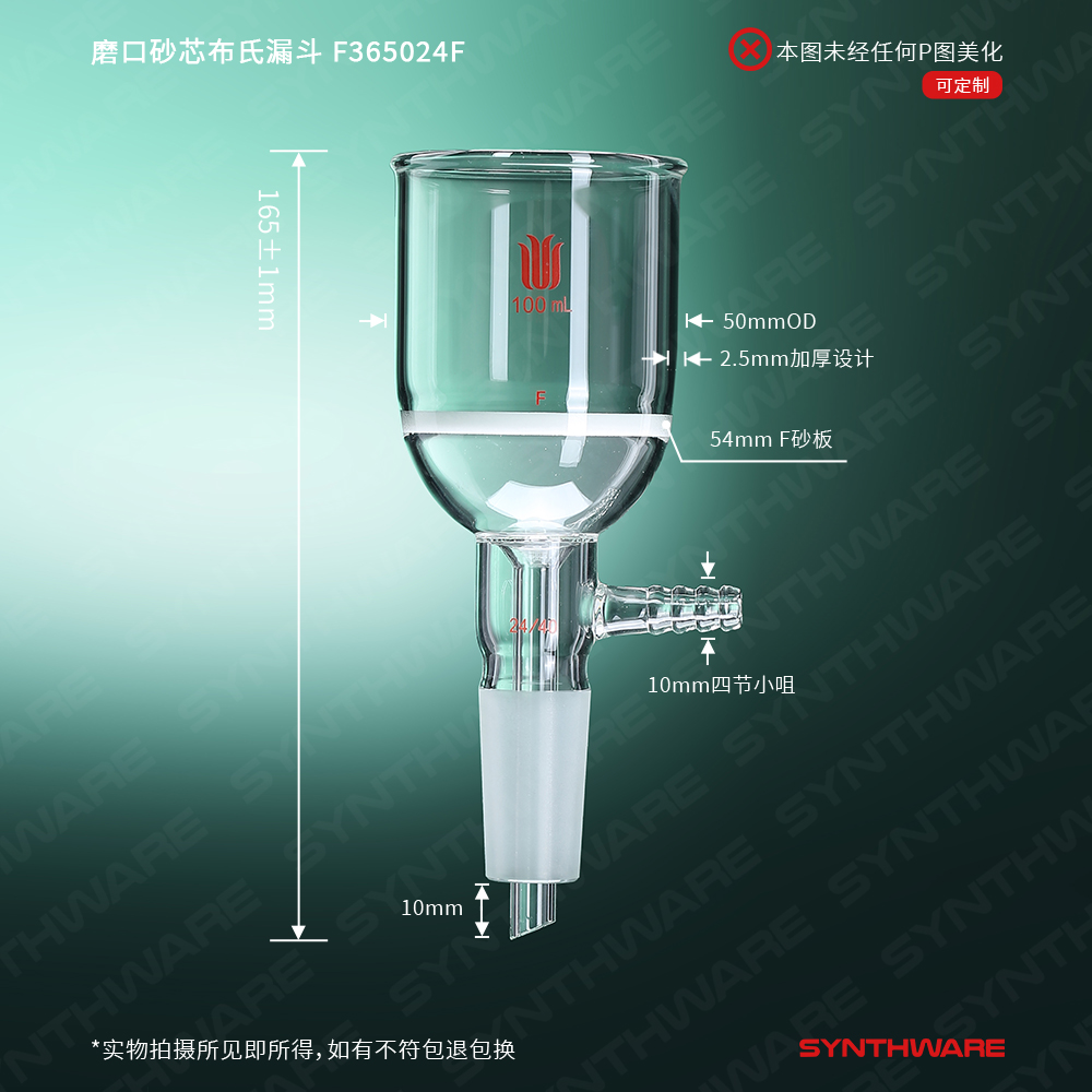 磨口砂芯布氏漏斗,100ml,24/40,砂芯孔隙规格:G4 F365024F