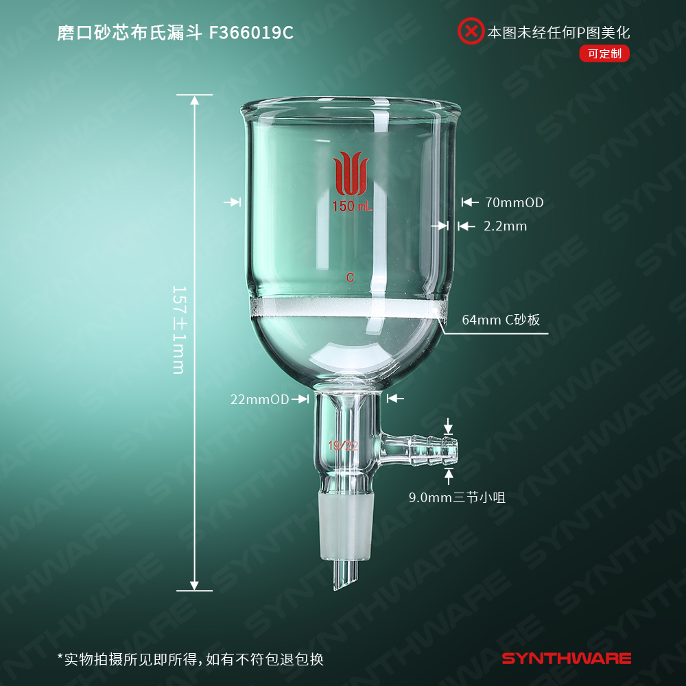 磨口砂芯布氏漏斗,150ml,19/22,砂芯孔隙规格:G2 F366019C