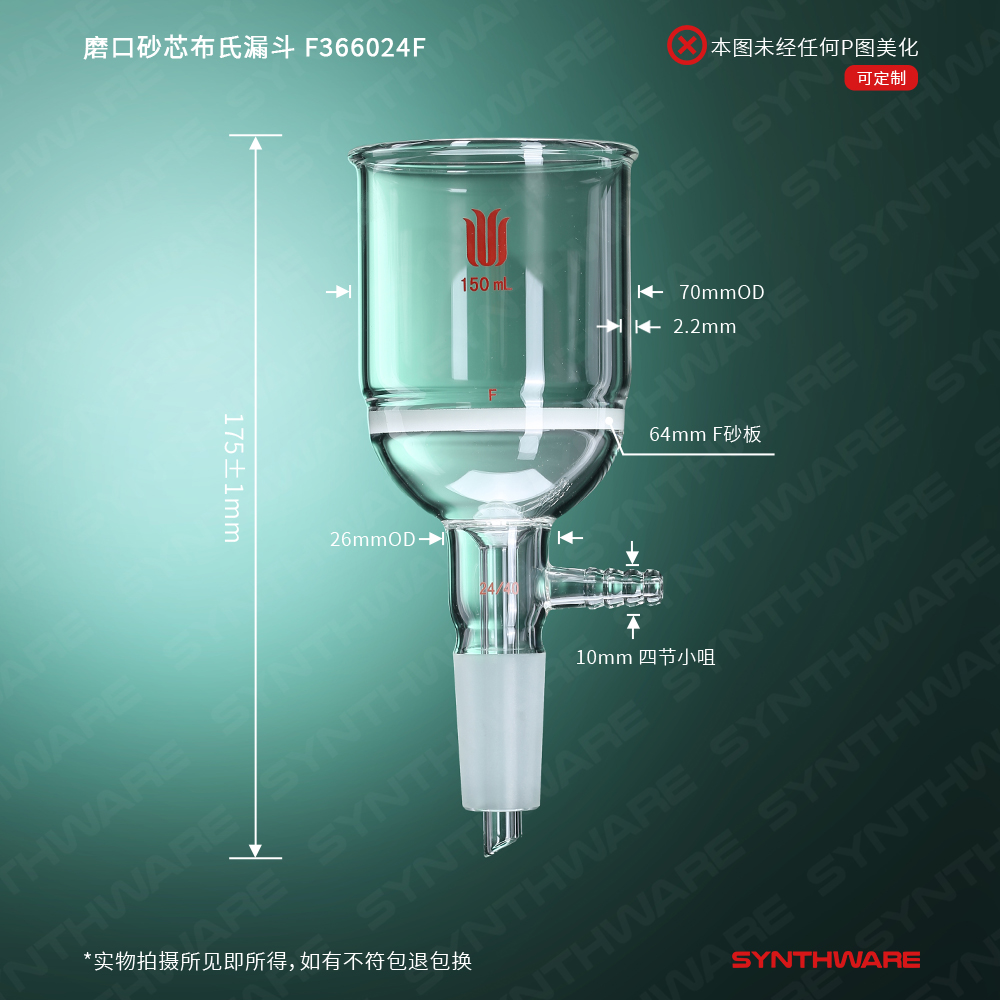 磨口砂芯布氏漏斗,150ml,24/40,砂芯孔隙规格:G4 F366024F
