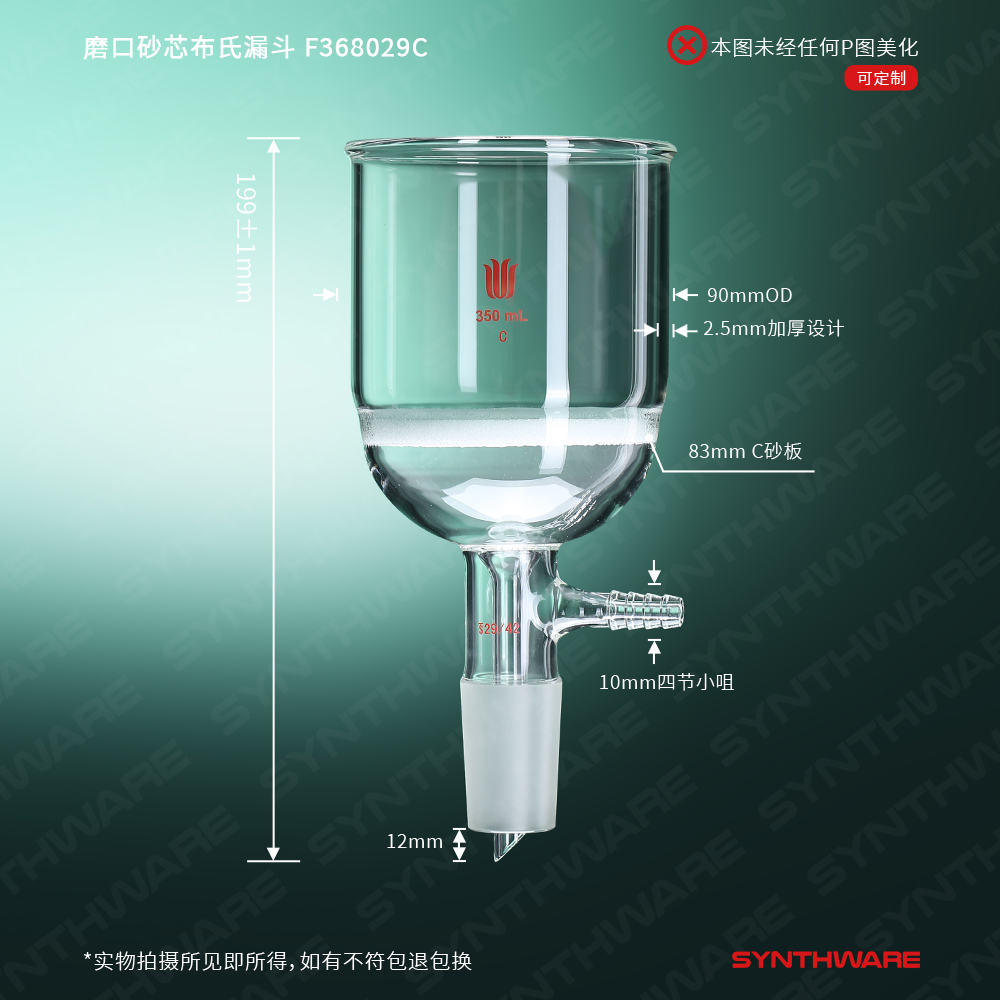 磨口砂芯布氏漏斗,350ml29/42,砂芯孔隙规格:G2 F368029C