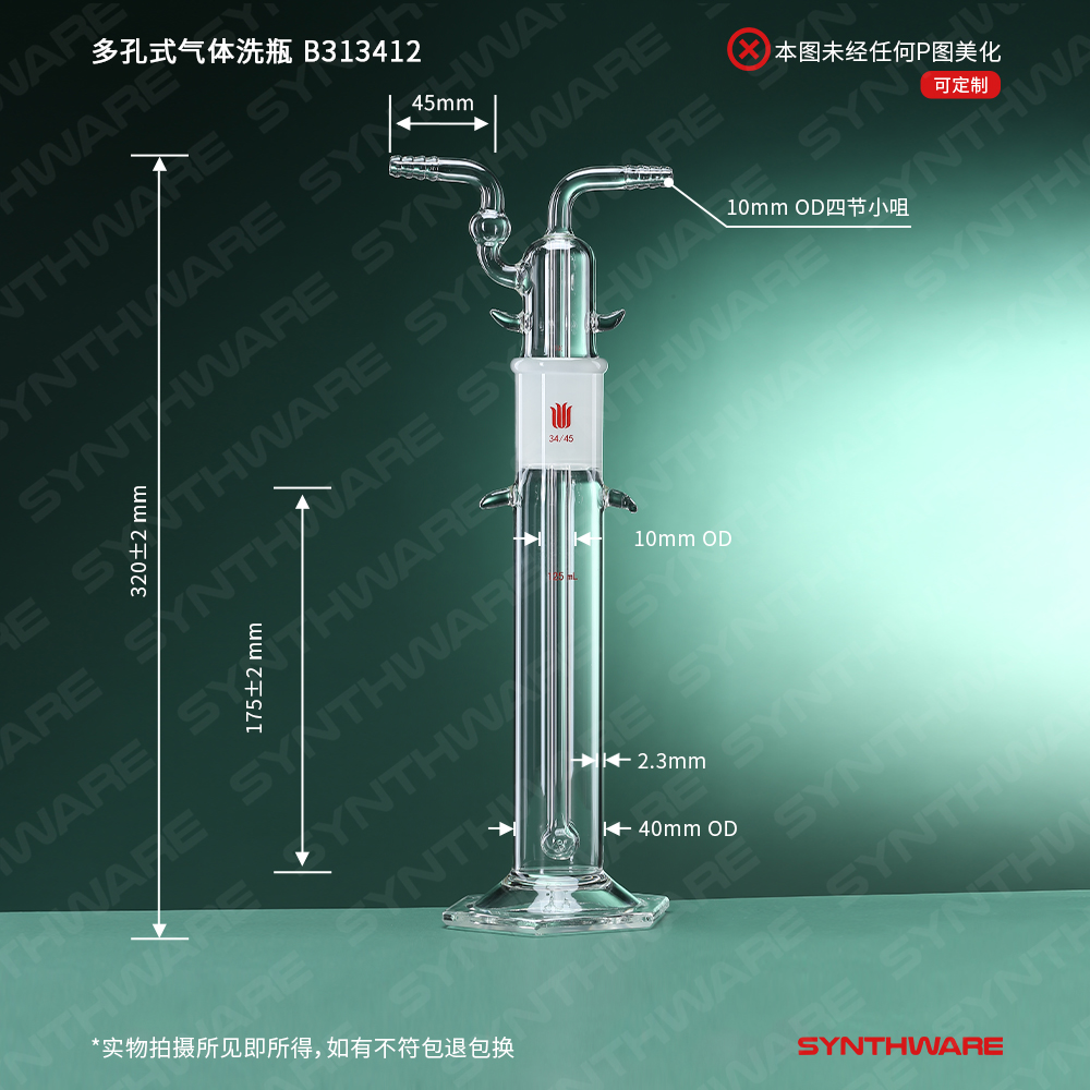 气体洗瓶,具砂板125ml,总高约290mm,C砂板 B300125C