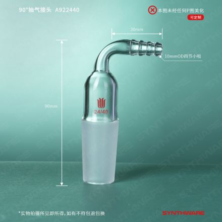 接头类 > 抽气接头 > 90°-外磨口抽气接头 > SYNTHWARE > 90°抽气接头,磨口:24/40,φ10小咀接口 A922440