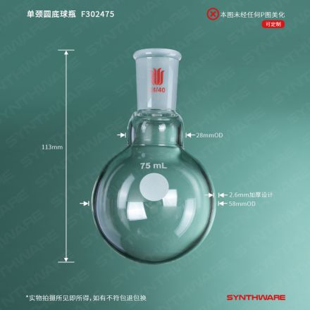 单颈圆底球瓶,厚壁高强度,磨口:24/40,75ml F302475