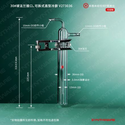 30#球法兰接口,可拆式直型冷肼,有效长度:225mm V273036