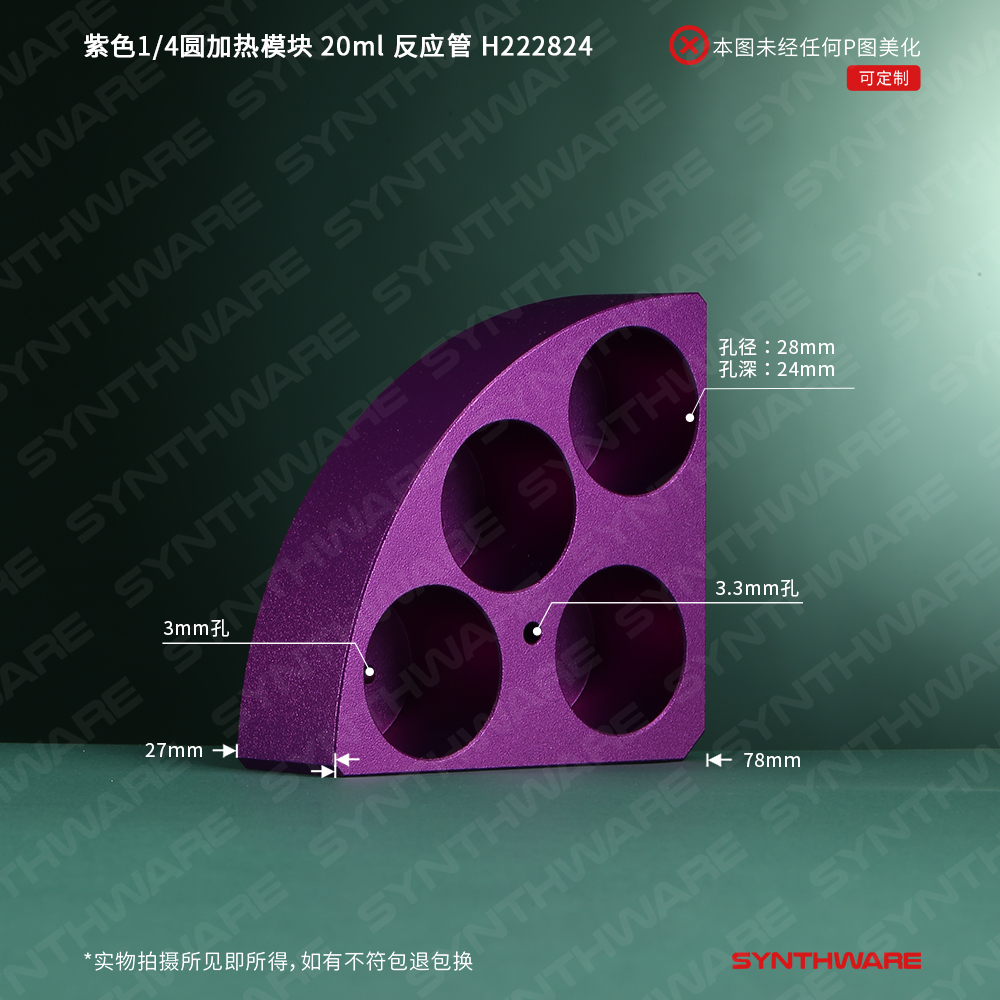 紫色1/4圆加热模块 20ml 反应管 4孔 孔径:28mm,孔深:24mm H222824