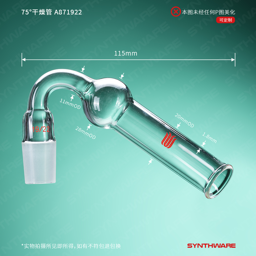 可直接与反应瓶相连,75°弯角可防止干燥剂进入反应瓶中
