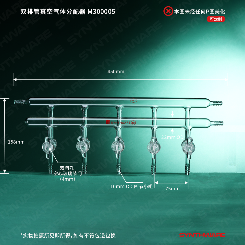 双排管真空气体分配器,实心玻璃节门,5,450mm,4小咀 M250005