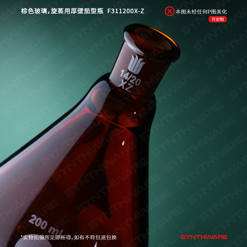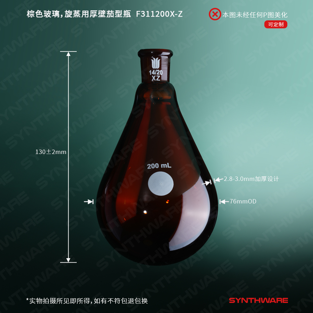 棕色玻璃,旋蒸用厚壁茄型瓶,高强度,磨口:14/20,200ml F311200X-Z
