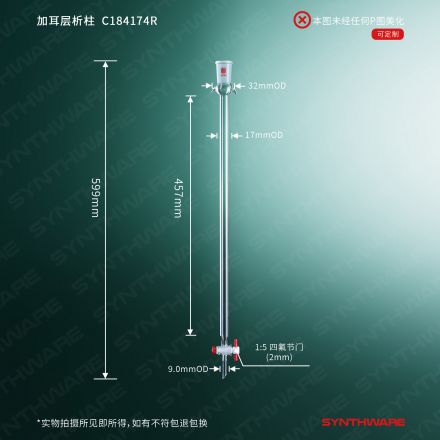 层析类 > 层析柱 > 带挂钩-闪式-无砂板层析柱 > SYNTHWARE > 加耳 层析柱,φ17mm,有效长457mm,节门孔径:2mm,24/40 C184174R