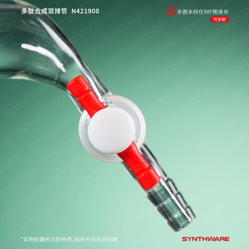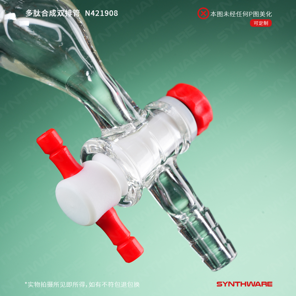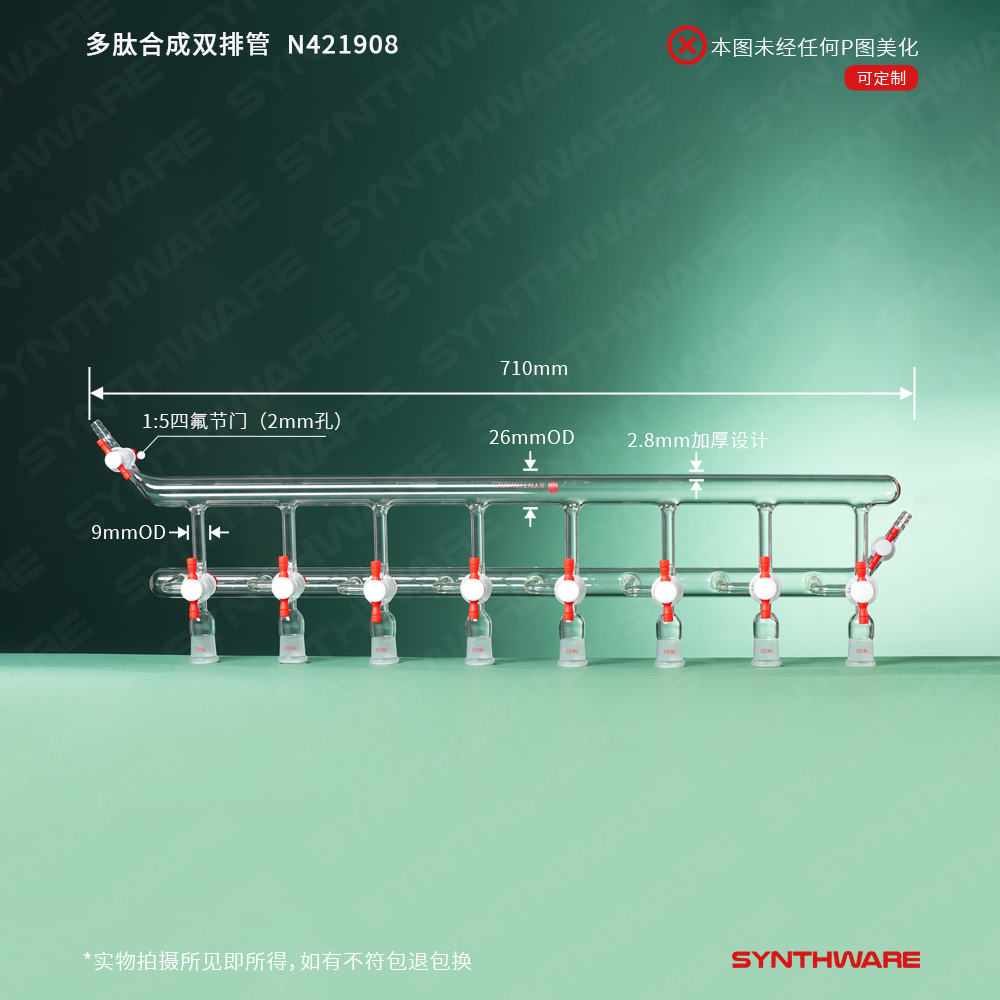 多肽合成双排管,19/22口,8组,总宽710mm,后排横梁左侧为四节小咀,前排横梁右侧为2mm四氟节门。 N411908