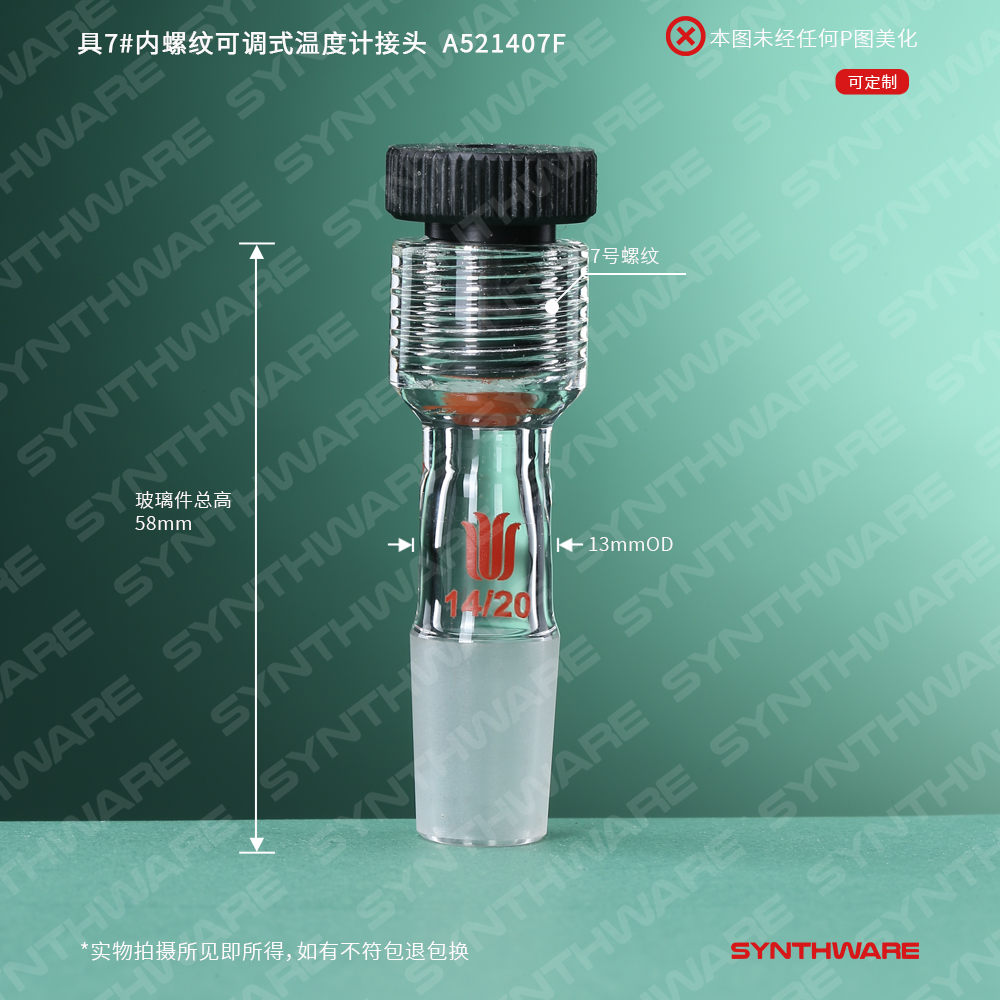 具7#内螺纹可调式温度计接头,,磨口:14/20,四氟全包O圈 A521407F