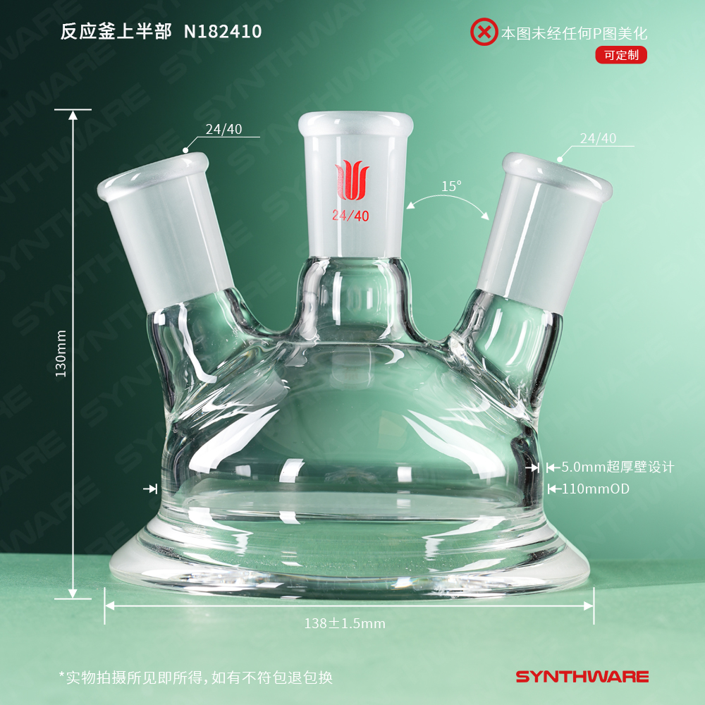 反应釜上半部,斜三口,100法兰,主口24/40侧口24/40 N182410
