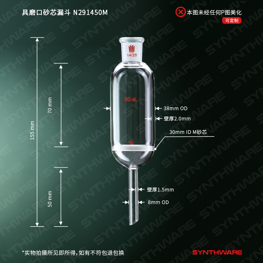 具磨口砂芯漏斗,磨口:14/20,容量50ML,砂板:G3 N291450M