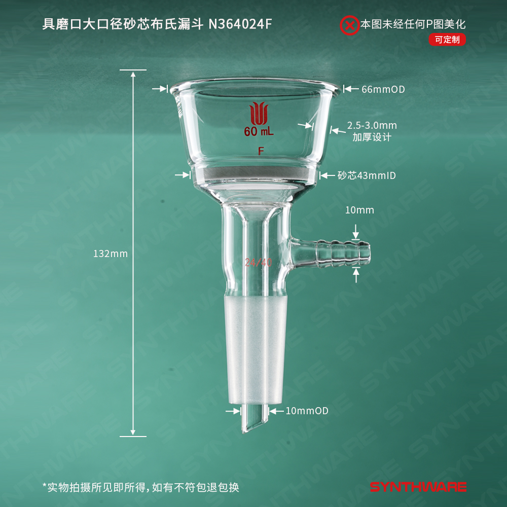 具磨口大口径砂芯布氏漏斗,60ml,24/40,砂芯孔隙规格:G3 N364024M
