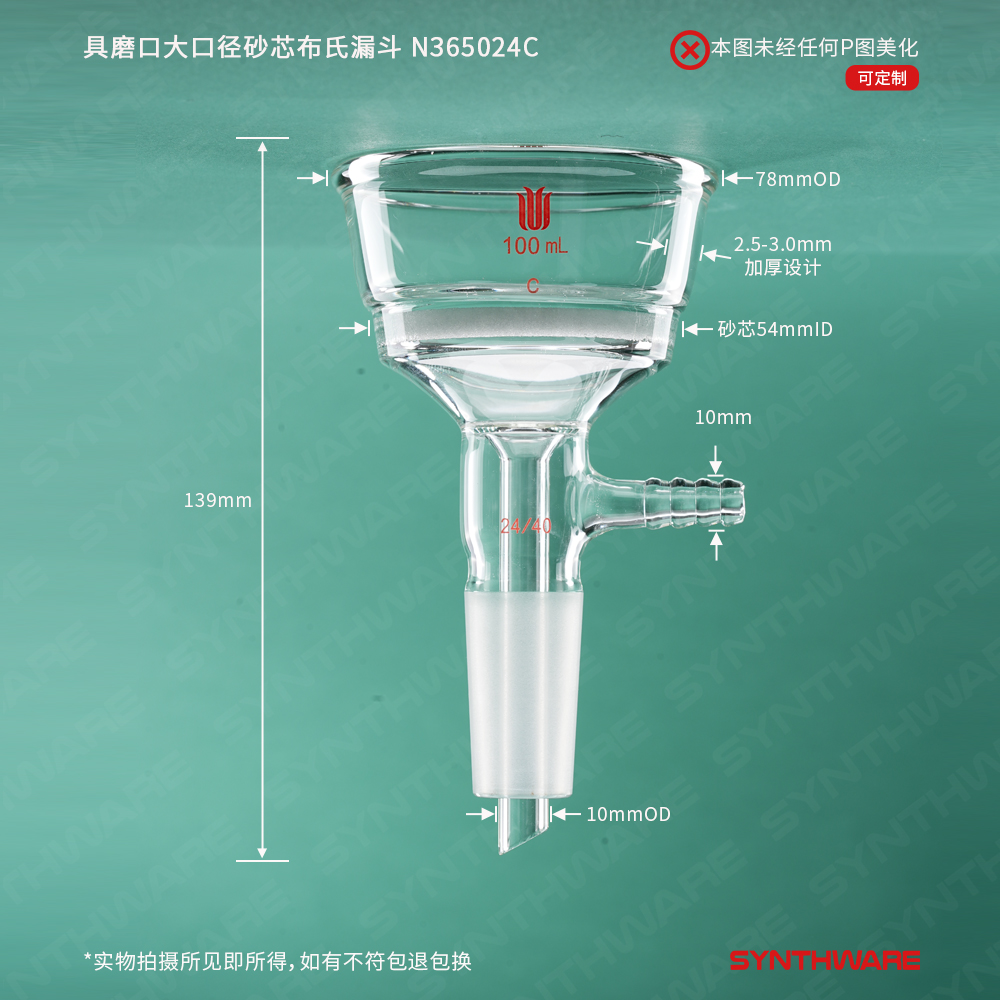 具磨口大口径砂芯布氏漏斗,100ml,24/40,砂芯孔隙规格:G3 N365024M