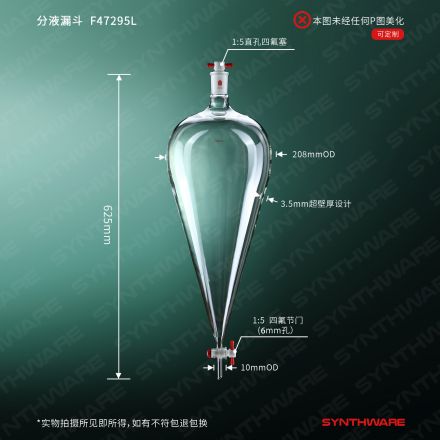 分液漏斗,上下磨口:24/40,4mm四氟节门,四氟口塞,2000mL F45242L