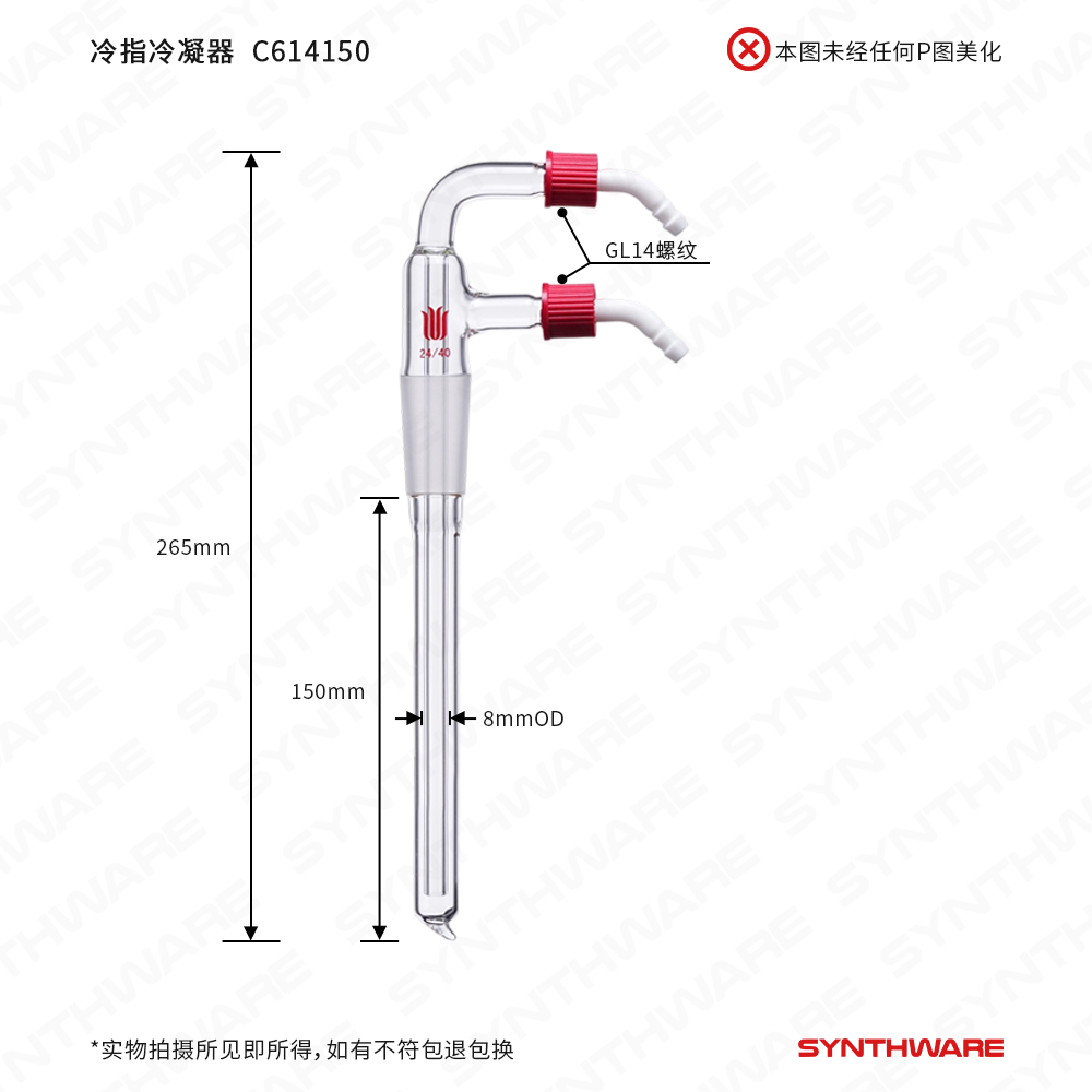 冷指冷凝器,具可拆式小咀,24/40,有效长150mm,φ8mm小咀 C614150