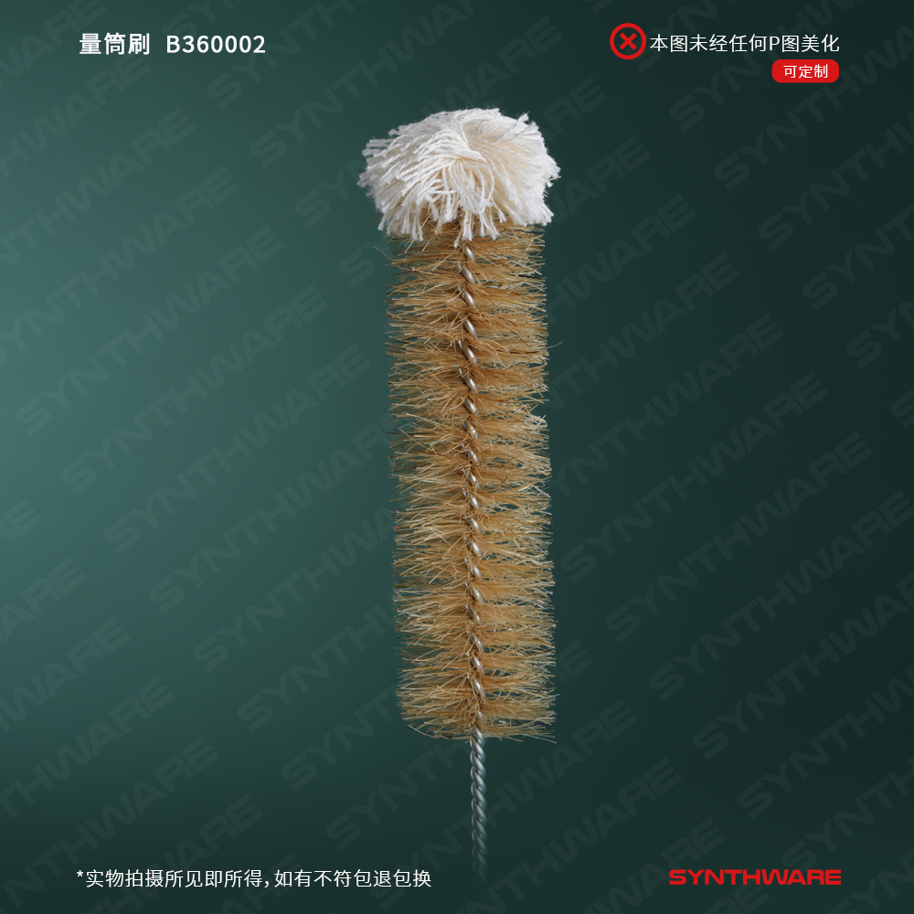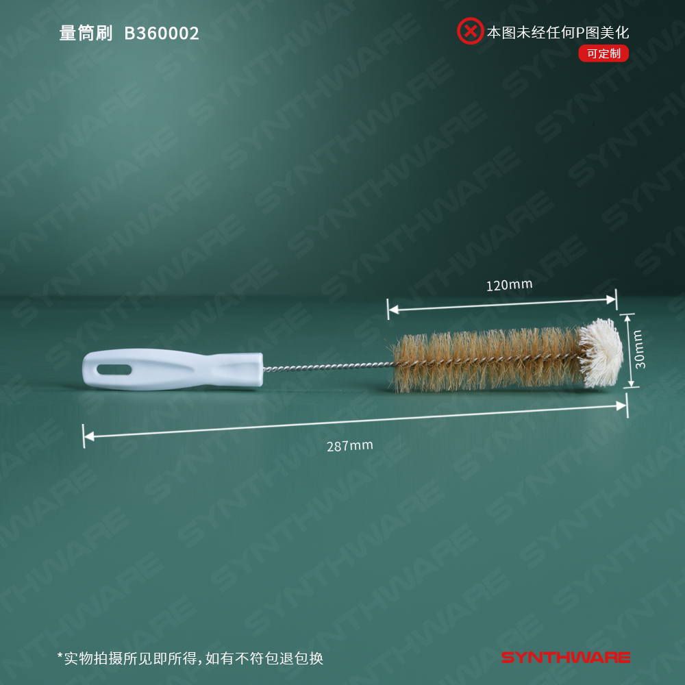 量筒刷,毛径30mm,毛长120mm,全长287mm,塑料手柄,顶部带棉线球 B360002