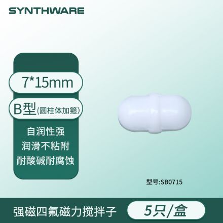四氟磁力搅拌子 B5*15mm(圆柱体加箍)5只/盒 SB0515