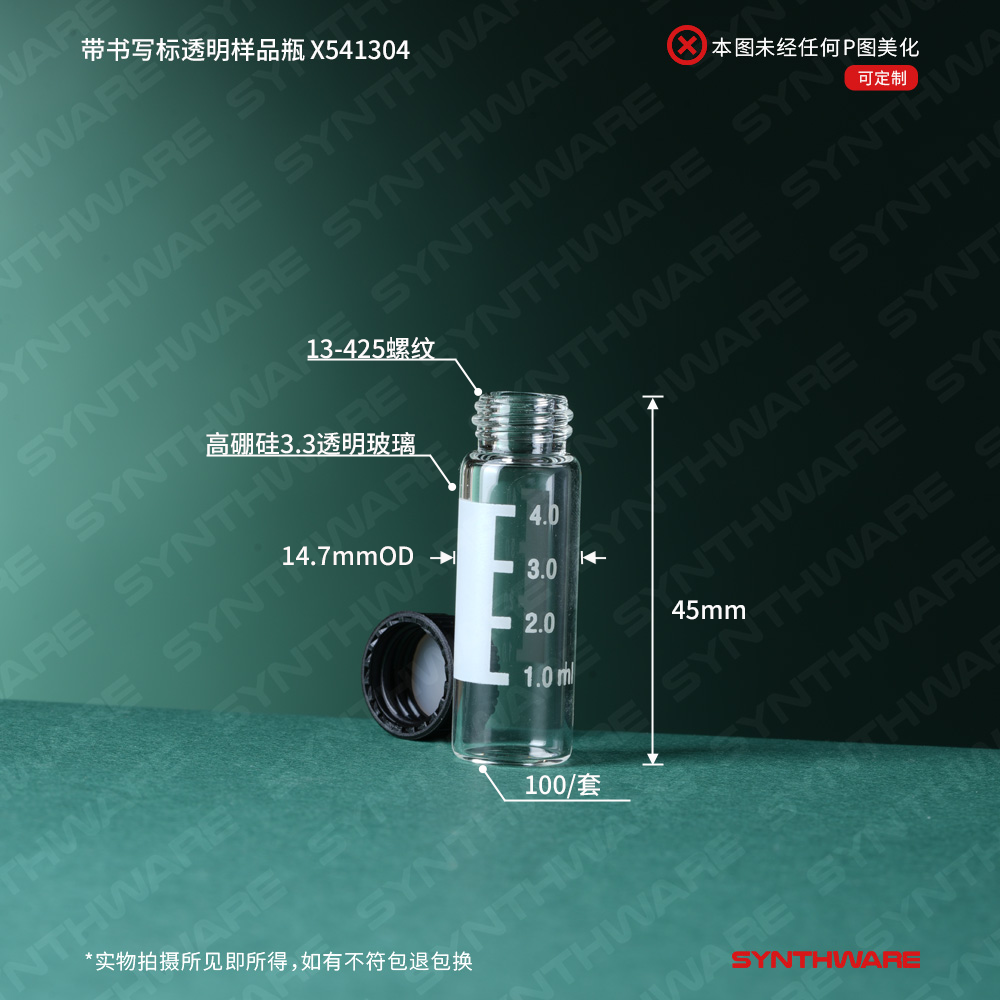 温馨提示:普通玻璃的样品只适用于存储,不能用于化学反应实验。 # 透明3.3高硼硅玻璃样品瓶套装(含瓶、实心盖、PTFE/硅胶垫片)。 # 具刻度及书写标,方便观察,便于标记。 # 玻璃材质:高硼硅玻璃 膨胀系数:3.3x10-6/K-1,膨胀系数是普料玻璃的一半,不易炸裂。 # 化学反应首选3.3高硼硅样品瓶,适用于微量反应,也可以用于高压灭菌,冷冻干燥等。可循环多次使用。 # 可根据需求选配瓶盖和垫片,详见下方选配配件。 # 温馨提示:普通玻璃(普料/白料)的样品瓶只适用于一般样品存储,不能用于化学反应,特别是需要加热或冷却的化学实验。 # 选配配件: 螺纹实心盖(9-425,PTFE/硅胶垫片),SC119011B 螺纹具孔盖(9-425,PTFE/硅胶垫片),SC119012B 螺纹具孔盖(9-425,预切口PTFE/硅胶垫片),V859425 螺纹实心盖(9-425,仅盖无垫片),SC9425 螺纹具孔盖(9-425,仅盖无垫片),SC9425J PTFE/硅胶垫片(9-425),R1402B 预切口PTFE/硅胶垫片(9-425),YQ9425  |
