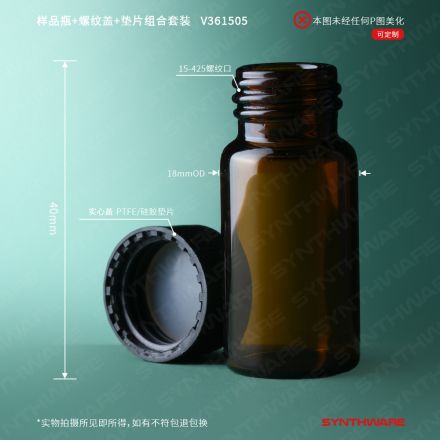 样品瓶套装,3ml,13-425螺纹口,16*33mm 普料透明玻璃,标配:实心盖 PTFE/硅胶垫片,100套/套 V291303